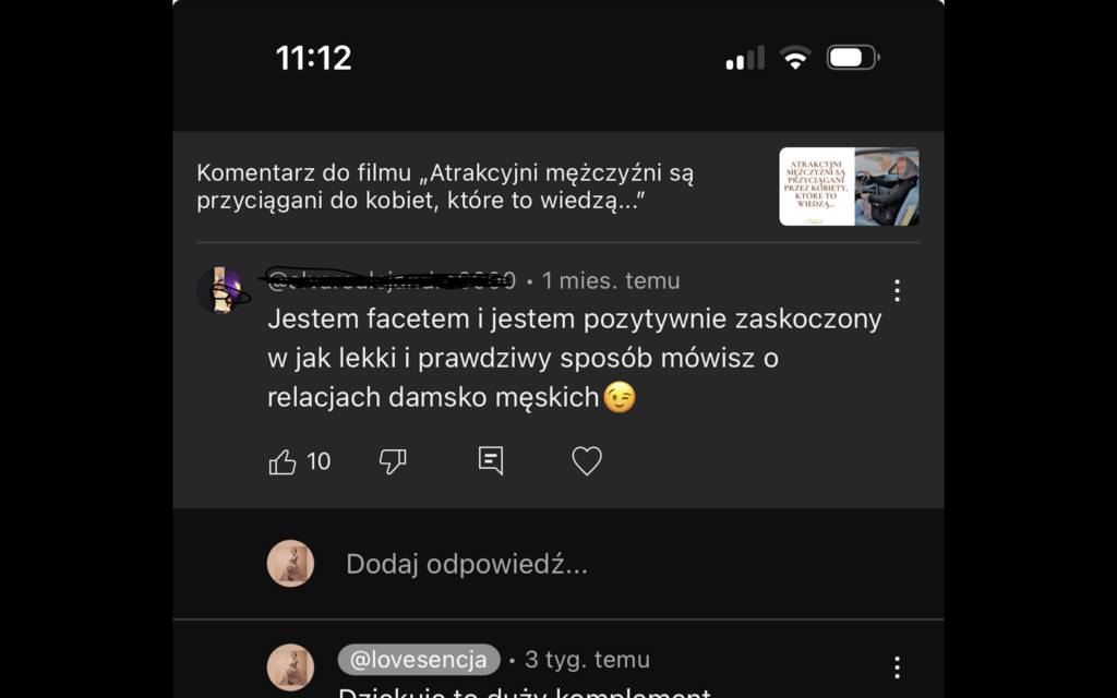Żaden inny coach nie trafił tak do mnie z przekazem, jak Madi w tym kursie 🙂 Może zabrzmi to trochę marketingowo, ale jeśli chcesz w końcu przyciągać i zauważyć potencjał dojrzałych mężczyzn osadzonych w męskiej energii oraz samej nauczyć się czuć lekko i kobieco, pozostając w zgodzie ze sobą, to ten kurs również jest dla Ciebie” Sylwia